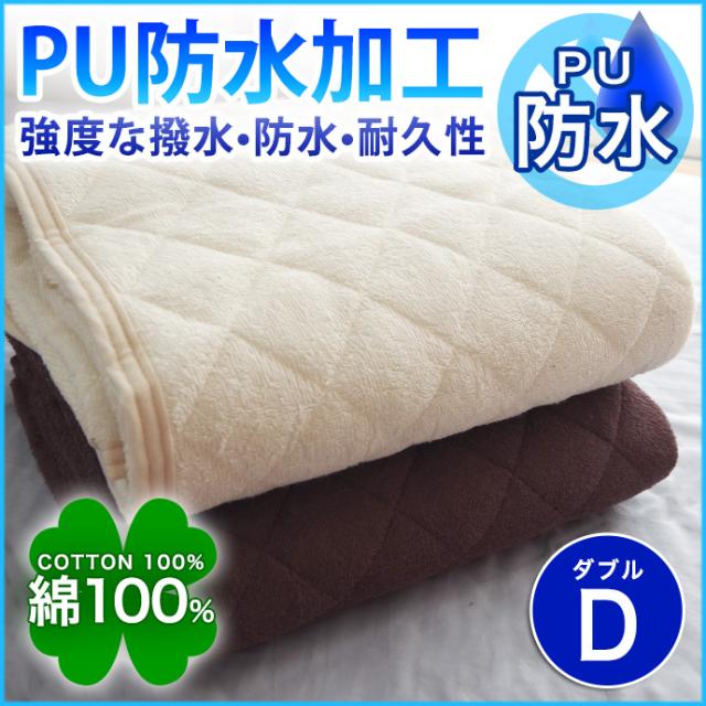 ダブル 綿100% PU 防水加工 敷パッド タオル 汗をしっかり吸収!優しい肌触り おねしょ対策