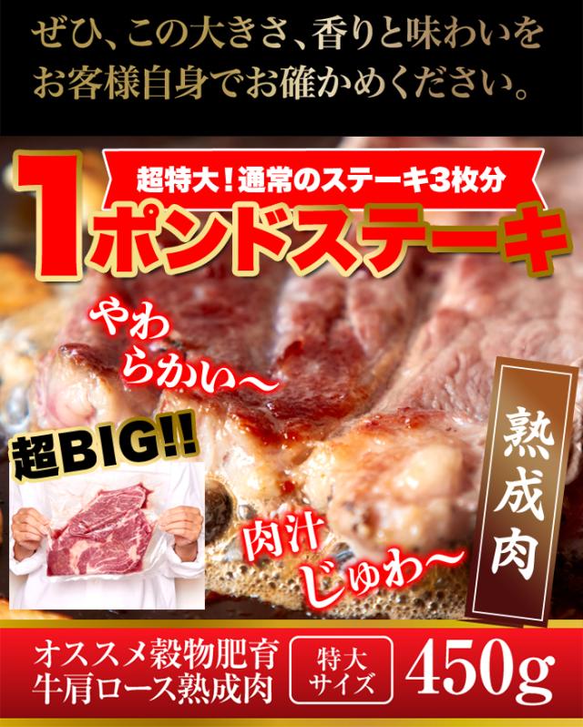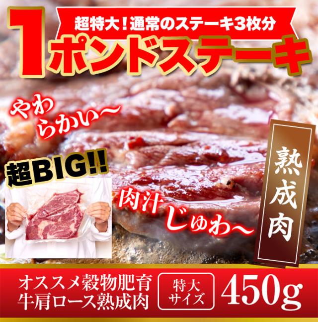 肉 ビッグ熟成牛!1ポンドステーキ!穀物肥育牛・肩ロースステーキ450g/ロースステーキ/ステーキ/冷凍A pre