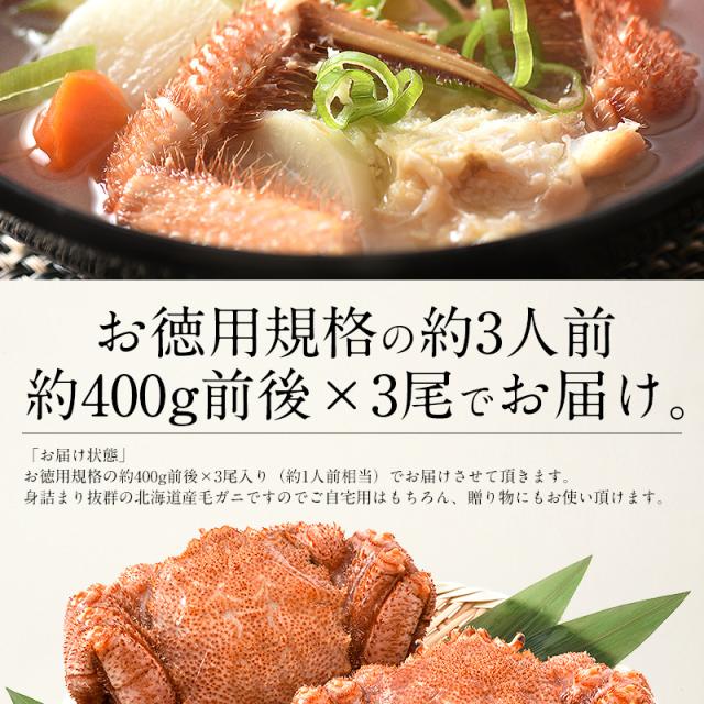 毛ガニ 400g前後×3尾 カニ かに 蟹 姿 毛蟹 毛がに ボイル蟹 食べ物 特大 大きい 冷凍 北海道 ボイルカニ 魚介 北海道産 美味しい 贈り物 kst23_d ギフト プレゼント お歳暮