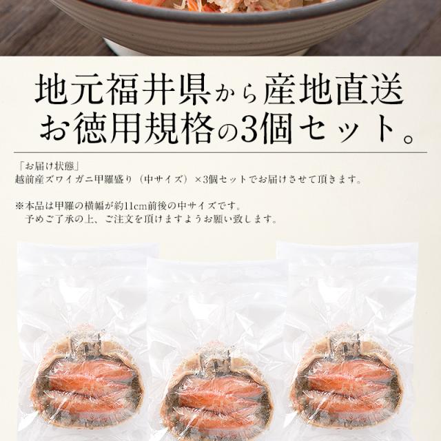 越前産ズワイガニ 甲羅盛り 中サイズ×3個(甲羅横幅 約11cm) ※11月6日の解禁後順次出荷 越前産 ずわい蟹 かに 蟹 カニ ずわい甲羅盛り ギフト プレゼント お歳暮