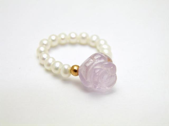 天然石 ローズアメジストAAA- 薔薇と淡水パール リング 立体バラ彫刻使用 レディース指輪 パワーストーン プチギフト 転勤 退職 お礼 母の日 敬老の日 クリスマス ギフト