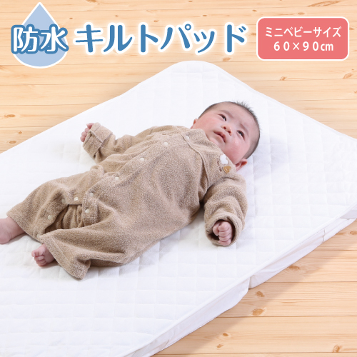 防水キルトパッド ベビーミニサイズ(60×90cm)赤ちゃんのおねしょを布団に浸み込ませない防水パット! ベビー布団の必需品、撥水シーツ