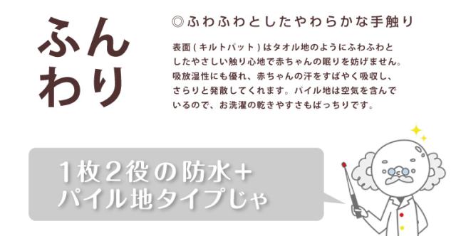 | 商品説明 | 当店で販売中の「寝返りマットレス」専用の防水シーツになります。表面はパイル生地を使用しており、赤ちゃんにも安心。四隅にはゴムが付いており、マットレスに簡単に装着、固定ができます。裏面にラミネート加工が施してあるので、撥水効果で水分を通しません。 |