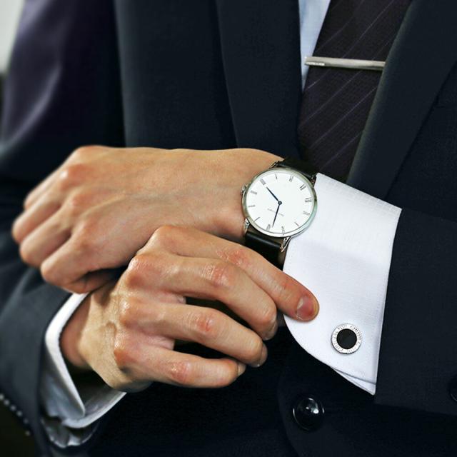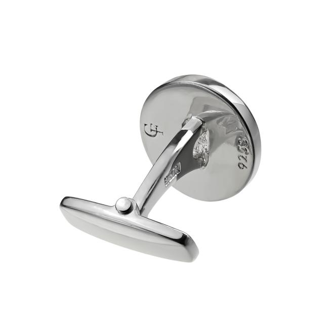 人気の天然石・オニキスがアクセントのカフス。プラチナ等によく用いられる仕法・ロジウムコーティングが、高級感のある美しい輝きを生み出します。オニキスは冷静な判断を促し決断力や行動力を与える石と言われているので、ビジネスマンへの贈り物にもおすすめです。上品さと高級感が漂うデザインは、様々な場面で袖元をスタイリッシュに飾ります。