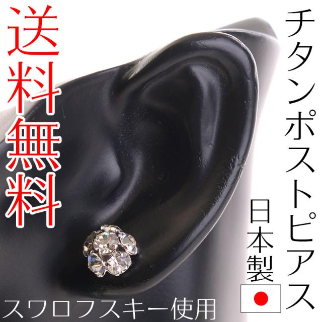 【メール便送料無料】国産チタンポストピアス 豪華6石スワロフスキーストーンを使用 日本製