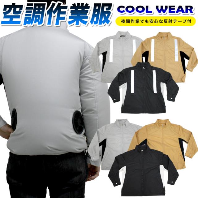 空調作業服 ポリエステル100% 空調ベスト 空調ウェア 作業着 反射 板 反射テープ COOLWEAR リフレクター 付き 夏 作業服 バッテリー ファン ★t 取り付け可能 空調作業服 長袖 熱中症対策 暑さ対策 作業着 工場 建築現場 車内 屋外作業 農作業 畑 溶接作業 釣 FJ3874