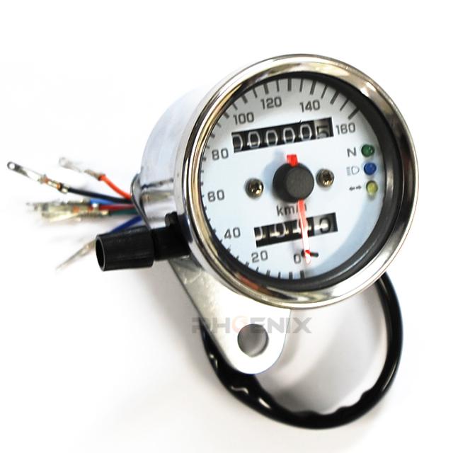 スピードメーター バイク 原付 バギー ATV トライク などの汎用 12V LED ライト ニュートラル ウインカー 機械式 160km メッキ
