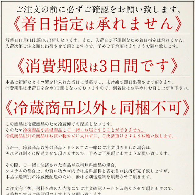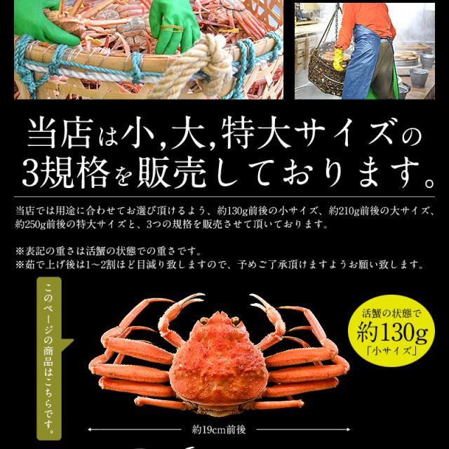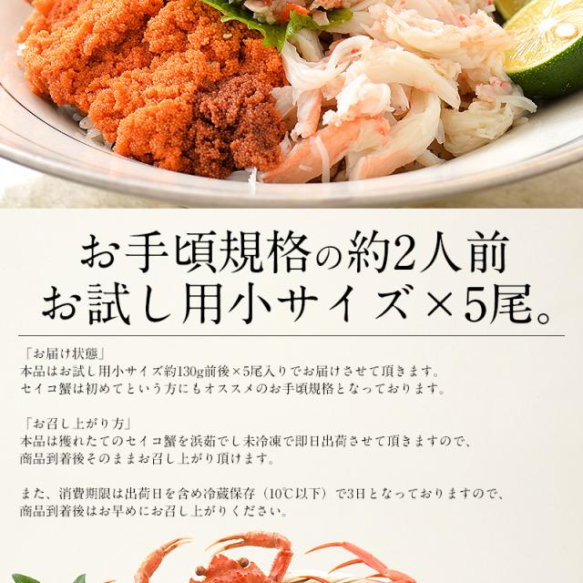 セイコガニ・小サイズ130g前後×5尾(茹で上げ後は1〜2割目減りします)