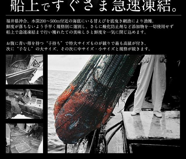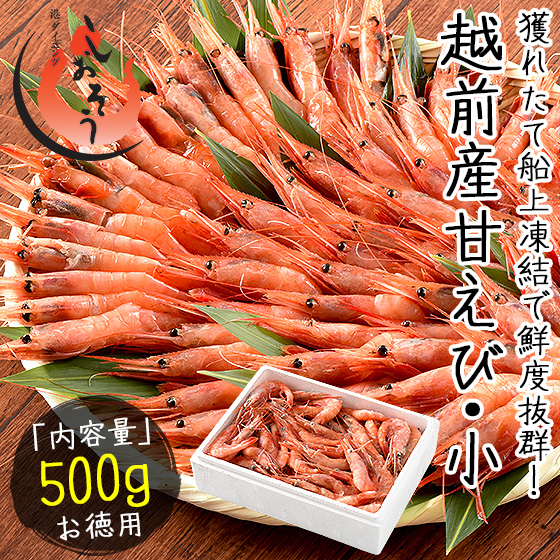 越前産 甘えび 甘エビ 子なし 小サイズ 500g(約40〜50尾入り) 刺身用 贈り物 産地直送 お刺身 ギフト プレゼント お歳暮