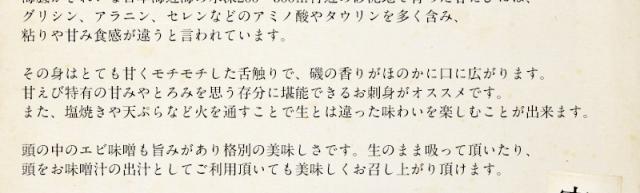 - 早速、刺身で頭は味噌汁のだしにして頂いてます。とても甘く美味しいです。