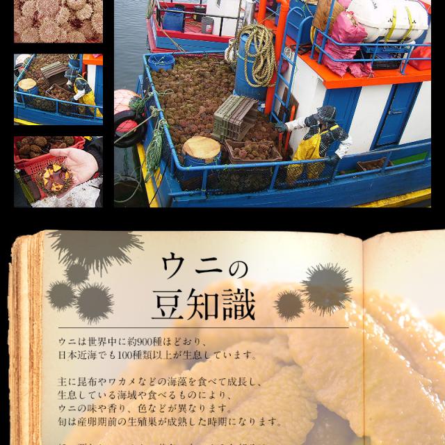 - 今回のウニは期待ハズレで不味かったです。容器自体の年度が古く、ウニの色も黒ずんでいました。 よく購入していましたが、今後購入は控えます、お客優先でなく、利益だけ追求していたら客は離れて行きます。