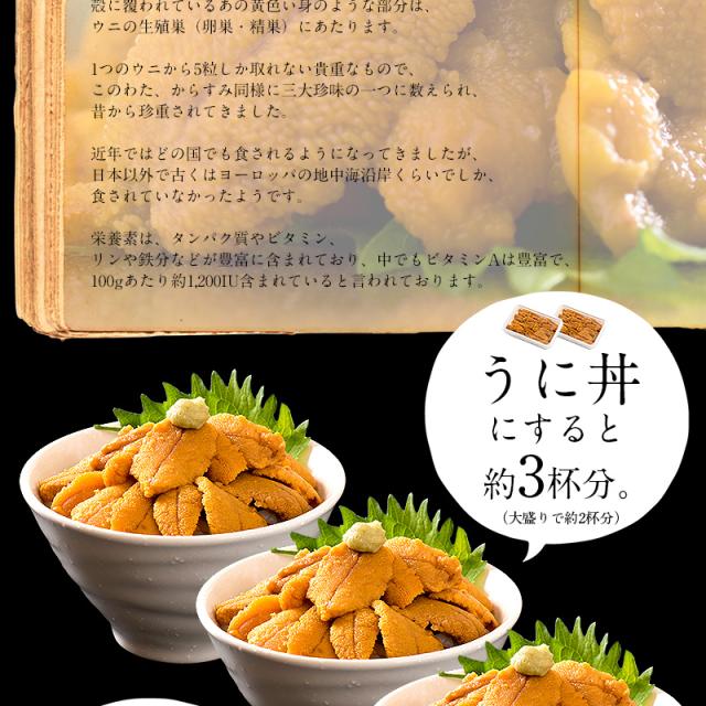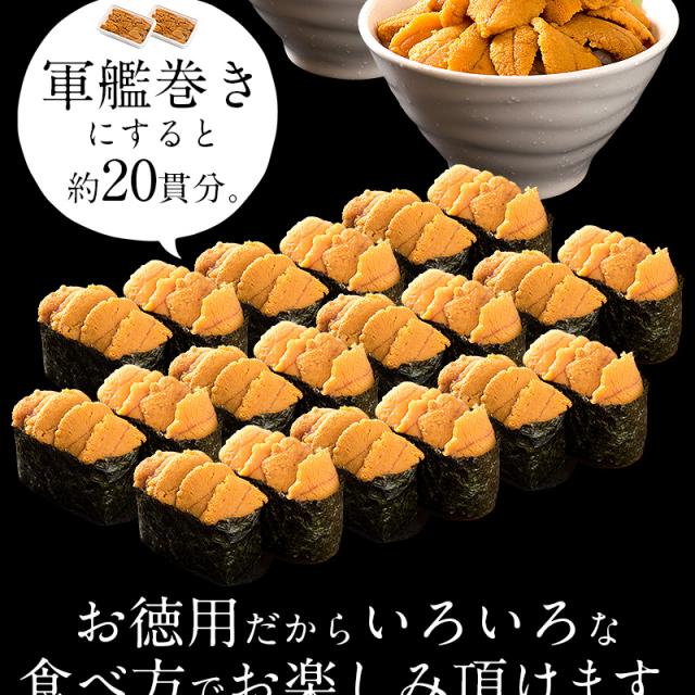 200g(100g×2パック)ウニ丼で約3杯、軍艦巻きで約20貫分相当