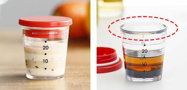 ●1回分のドレッシングを作ってそのまま持ち運べるランチ用ドレッシングカップです。