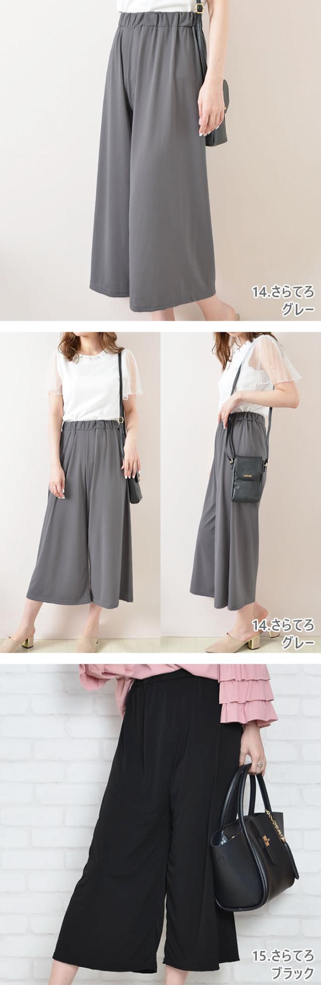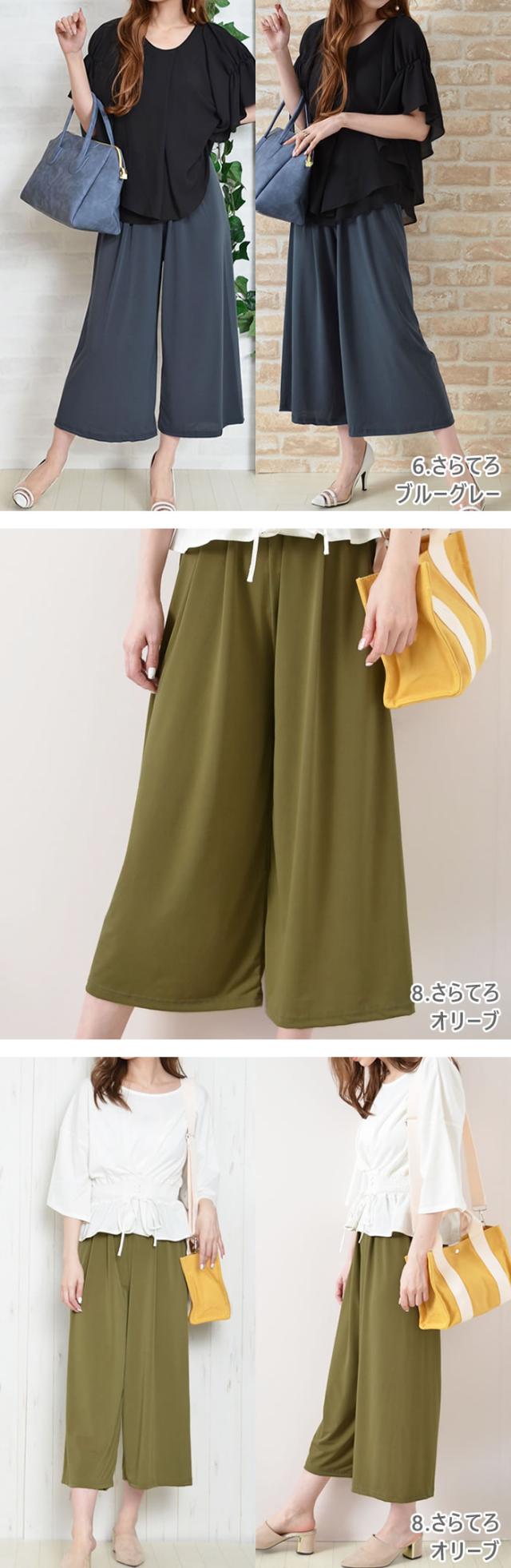 ガウチョパンツ レディース 七分丈 春 夏 春夏 涼しい きれいめ 夏用 黒 ゆうメール便送料無料 ガウチョ パンツ スカーチョ スカンツ 大人ワイドパンツ 無地 ウエストゴム フレアパンツ さらてろガウチョパンツ