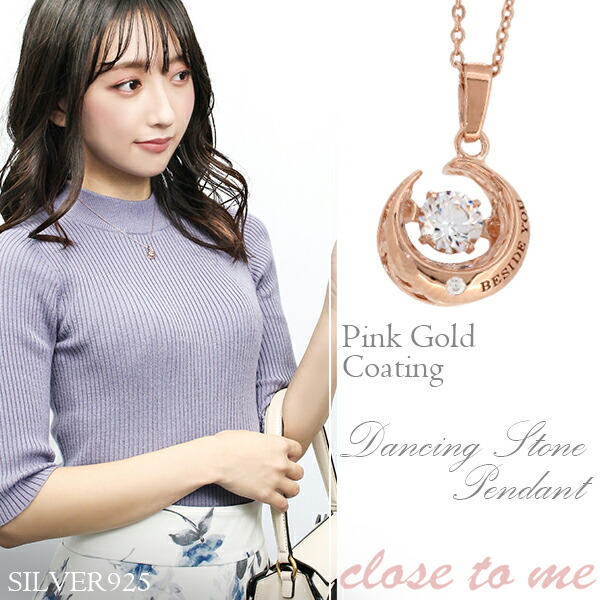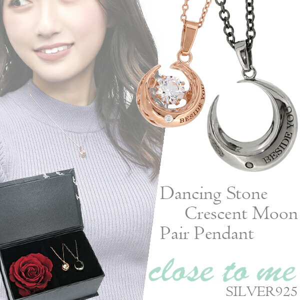 ペアネックレス ダンシングストーン ムーン 三日月 シルバー925 close to me ローズ プリザーブドフラワー 2本セット