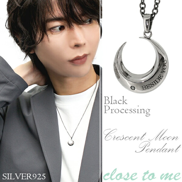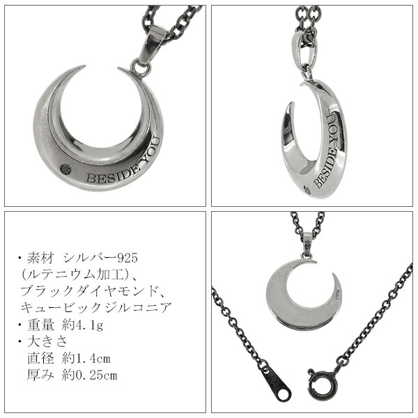 メンズはブラックカラーに仕上げたシャープなシルエットの三日月に、クールに輝くブラックダイヤモンドを留めています。
