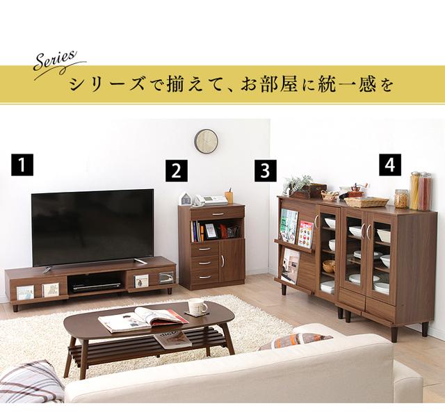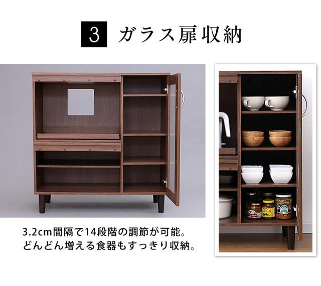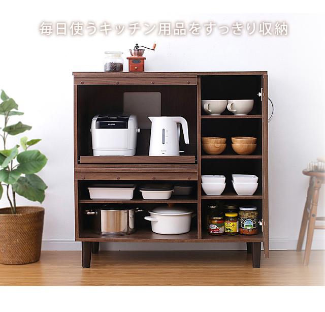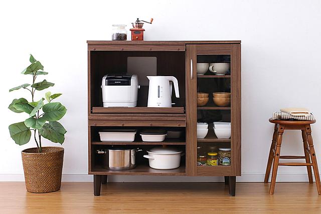 調理家電や食器などを収納できる、キッチンキャビネットです。