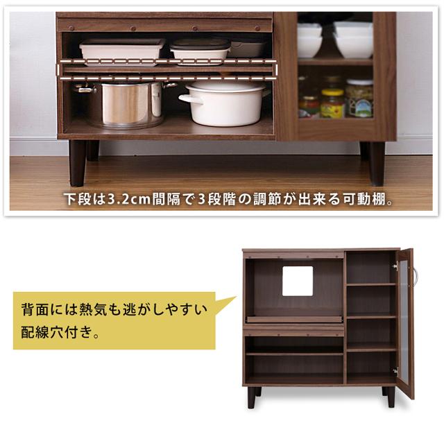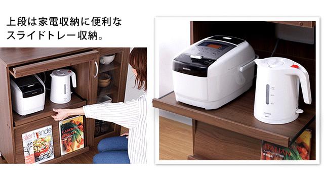 家電収納に便利なスライドトレー収納で、湯気の出る炊飯器も安心して使用可能です。