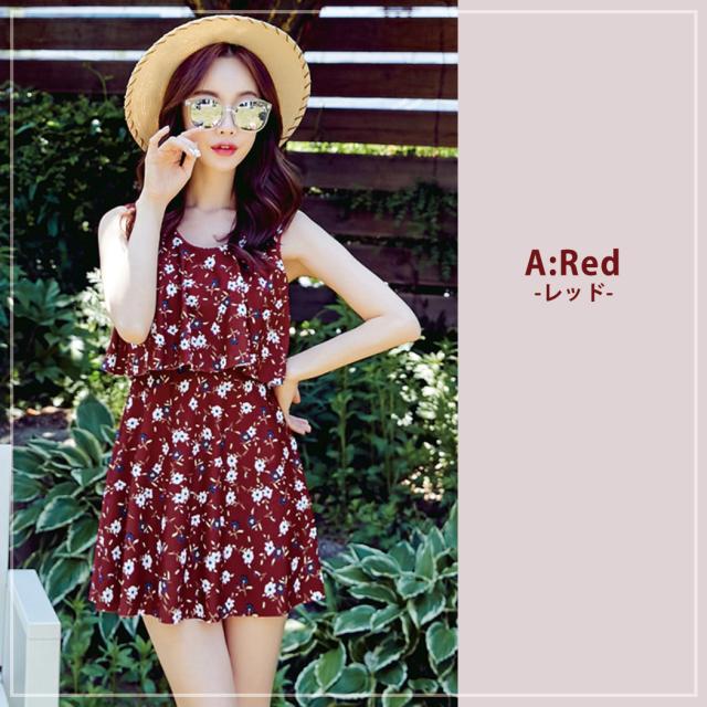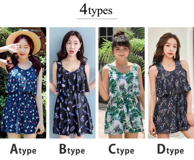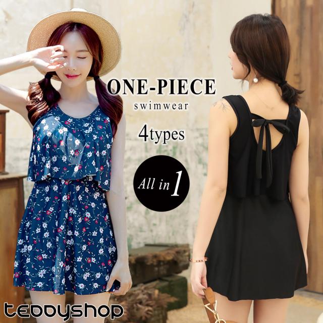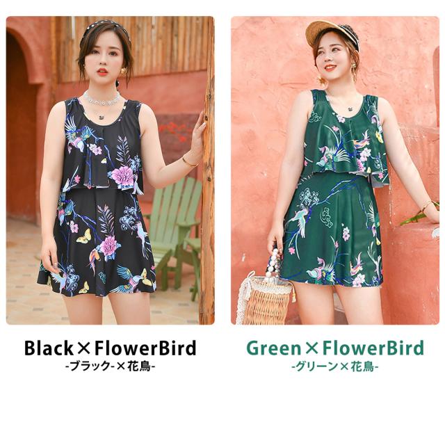 水着 レディース 体型カバー ワンピース オールインワン セクシー バックシャン フレア おしゃれ 水着 大きいサイズ 水着 花柄 胸元 お腹 お尻 太もも カバー かわいい 黒 赤 青 ぽっちゃり 女性 20代 30代 40代