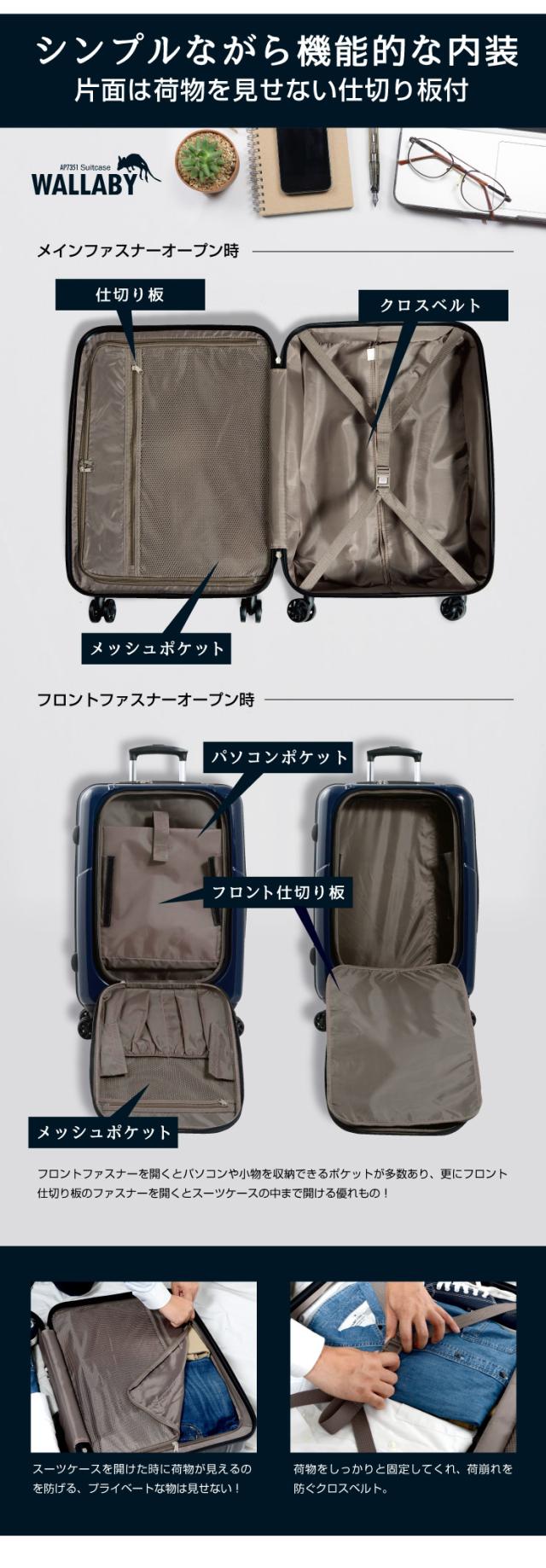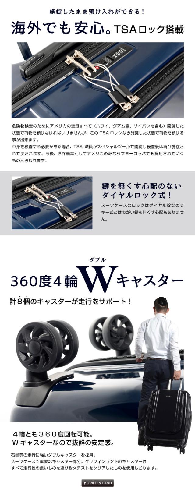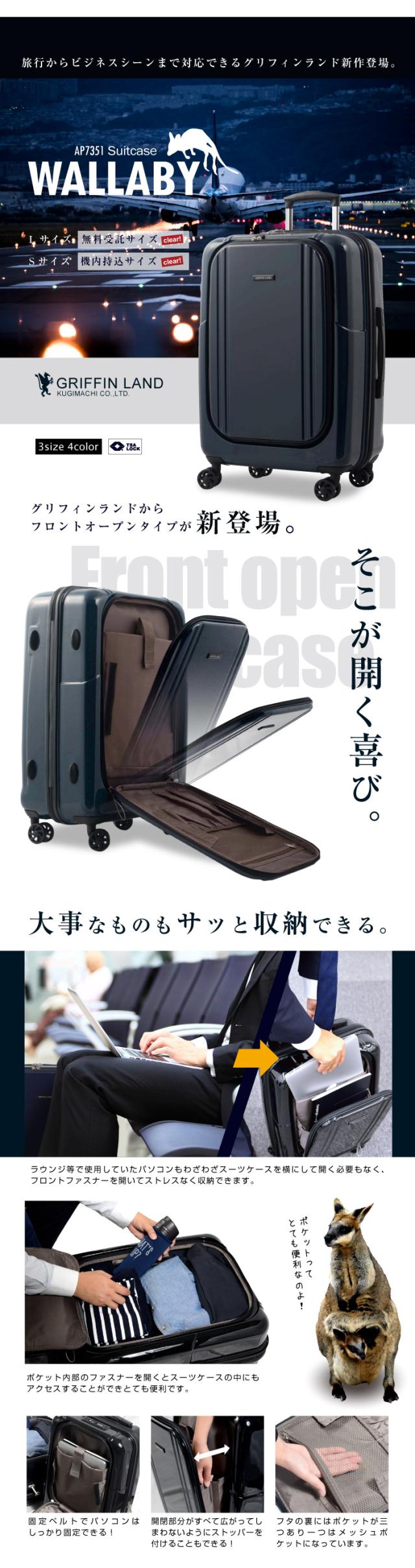 キャリーケース キャリーバッグ スーツケース Mサイズ フロントオープン メンズ ビジネス 中型 グリフィンランド griffin land レディース 送料無料 軽量 バッグ ハード ファスナータイプ 鏡面 TSA 4輪 前開き 拡張 AP7351 WALLABY ワラビー