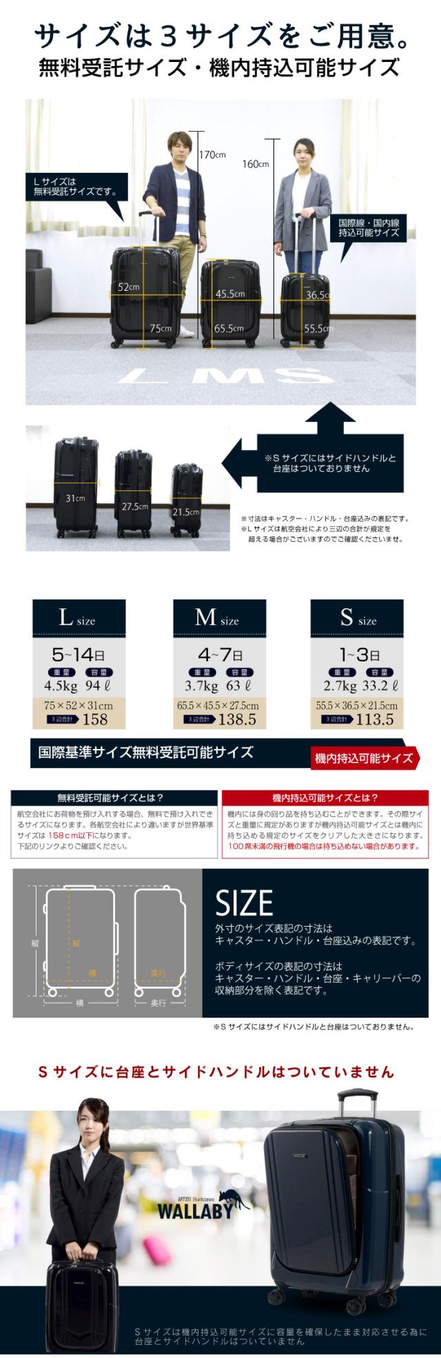 ※Lサイズは航空会社により三辺の合計が規定を超える場合がございますのでご確認くださいませ。