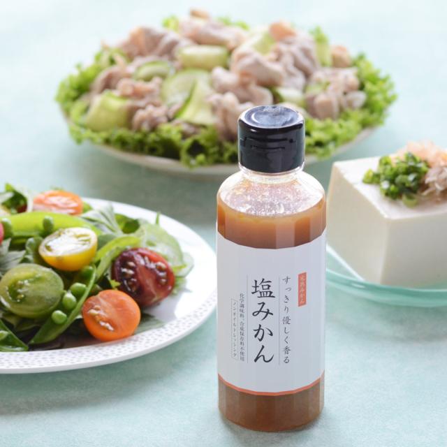 愛媛の新しい調味料「塩みかん」を、ドレッシングにして手軽に使いやすくしました。簡単に使えて、かけるだけでおいしくなる、ちょっと珍しい調味料です。