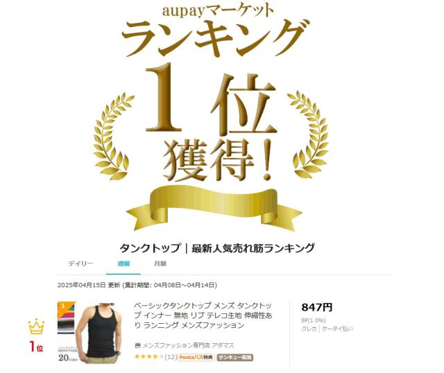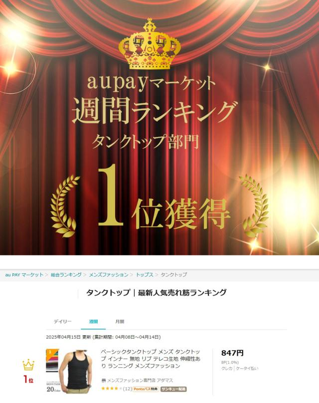 伸縮性に富み、体にやさしくフットしてくれるリブタンク(テレコ素材)は、文句なしの快適な着心地です。