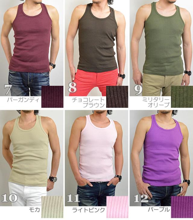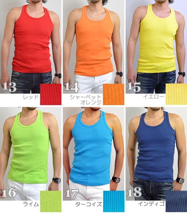 メンズリブ(テレコ)カラータンクトップ《ベーシック》