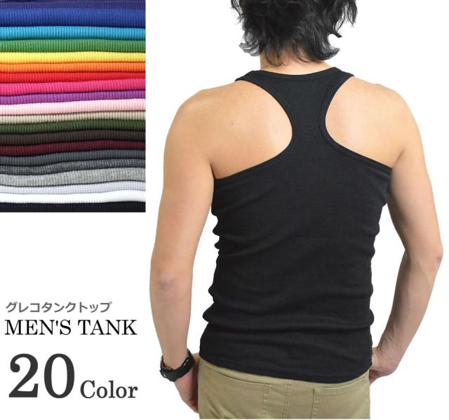 グレコタンクトップ メンズ タンクトップ インナー 無地 リブ テレコ生地 伸縮性あり ランニング メンズファッション
