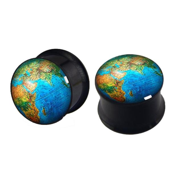 [ 面白い ボディピアス ステンレス ダブルフレア プラグ] 地球 2G 2ゲージ 0G 0ゲージ 00G 00ゲージ 12mm 12.0mm 12ミリ おもしろ オモシロ 面白い メンズ レディース ブラック 黒色 ボディーピアス 男性 女性 地図 マップ アース プレゼント ギフト 2g 0g 00g