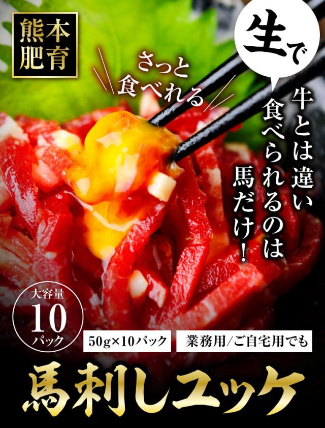 馬刺し 熊本 送料無料 ユッケ 約10人前 500g 約50g×10パック まとめ買い 肉 馬肉 焼肉 利他フーズ バレンタイン 甘くないギフト ホワイトデー 卒業祝い 合格祝い