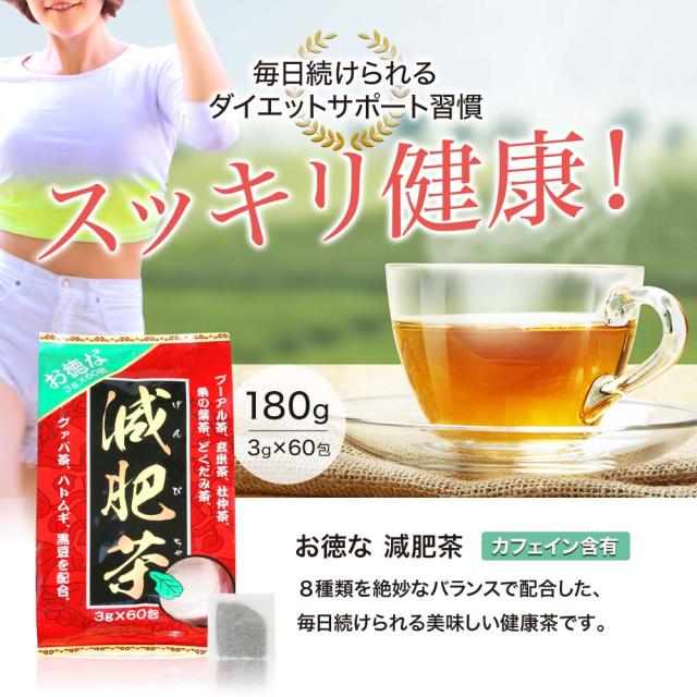 お徳な減肥茶 3g×60包×24個セット 送料無料 宅配便 | 減肥茶 ダイエット ダイエット食品 ダイエット茶 茶葉 100% ティーパック ティーバッグ 玄米茶 プーアル茶 プーアール茶 どくだみ茶 グァバ茶 グアバ グアバ茶 ガバ茶 杜仲茶 ハトムギ茶 ハト麦 黒豆 まとめ買い