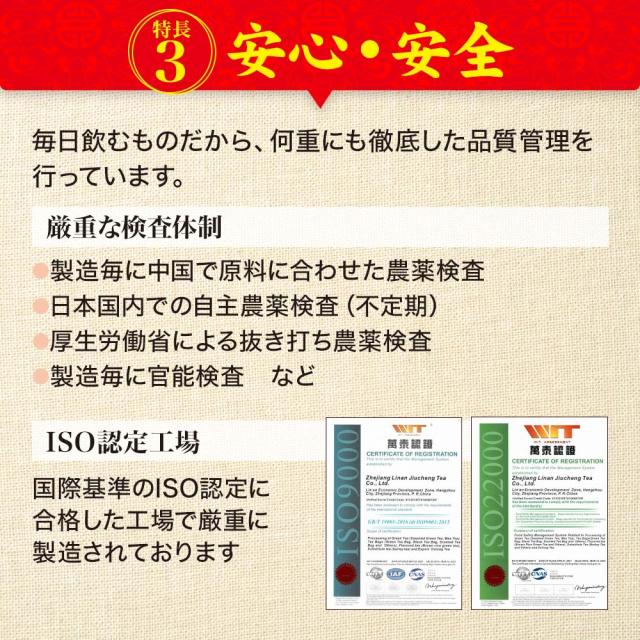 | ●表示事項をお読みの上、ご飲用ください。 ●植物を原料として使用しておりますので、風味や香りなど商品によって違いがあることがありますが、品質に変わりありません。 何かお気づきの点がありましたら、ご連絡ください。 ●アレルギー体質等まれに体質に合わない方もいますので、ご飲用後体調のすぐれない時は、中止してください。 |