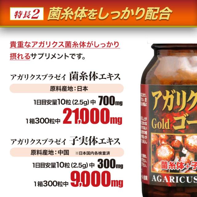 アガリクス茸ゴールド粒 300粒×3個セット 約75〜90日分 送料無料 宅配便 | アガリクス アガリクスサプリ アガリスク アガリスクサプリ βグルカン Bグルカン アガリクス菌糸体 アガリクス菌 菌糸体 エキス サプリ サプリメント 粒 タブレット 男性 女性 まとめ買い