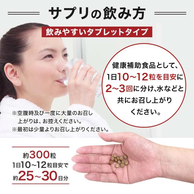 | ●健康補助食品として、一日10〜12粒を目安に2〜3回に分け、水などと共にお召し上がりください。 ●空腹時及び一度に大量のお召し上がりは、お控えください。 ●最初は少量よりお召し上がりください。 |