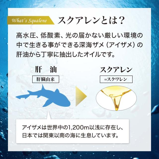 いかと考えられています。深海鮫の肝油成分の多くはスクアレンという油性