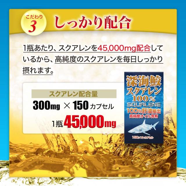 深海鮫スクアレン100% 150球×6個セット 約180〜222日分 送料無料 宅配便 | スクアレン 100% 肝油 深海鮫 深海鮫エキス サメエキス サメ 鮫肝油 サメの肝油 肝臓 アイザメ アイ鮫 サプリ サプリメント 粒 カプセル 男性 女性 まとめ買い
