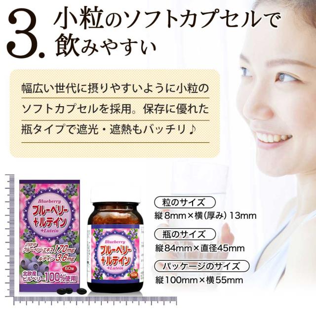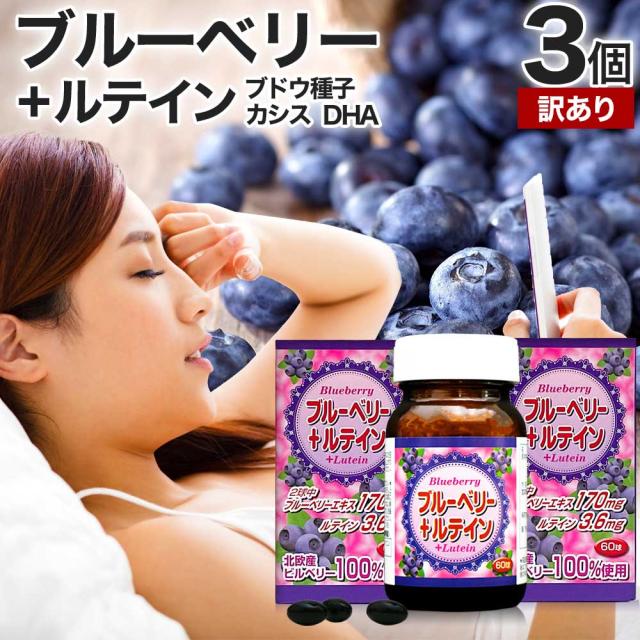 訳あり ブルーベリー+ルテイン粒 60球×3個セット 約90日分 賞味期限2026年12月のみ 送料無料 宅配便 | ルテイン ビルベリー ブルーベリー アントシアニン カシス エキス DHA オメガ3 omega3 オメガ3オイル サプリ サプリメント 男性 女性 アウトレット まとめ買い