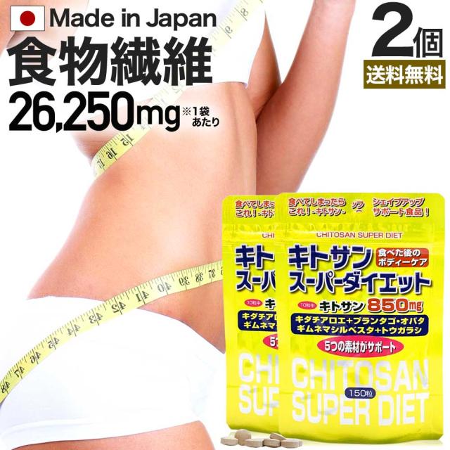キトサンスーパーダイエット 150粒×2個セット 約30〜42日分 送料無料 メール便 | ダイエット サプリ サプリメント ダイエット食品 ダイエットサプリメント 男性 女性 食物繊維 キトサン 鉄分 ビタミンB ギムネマ サイリウム トウガラシ エキス 粒 タブレット まとめ買い