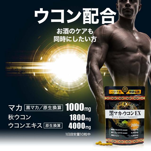 | 秋ウコン:1,800mg、黒マカエキス(原生換算):1,000mg、ウコンエキス(原生換算):4,000mg |