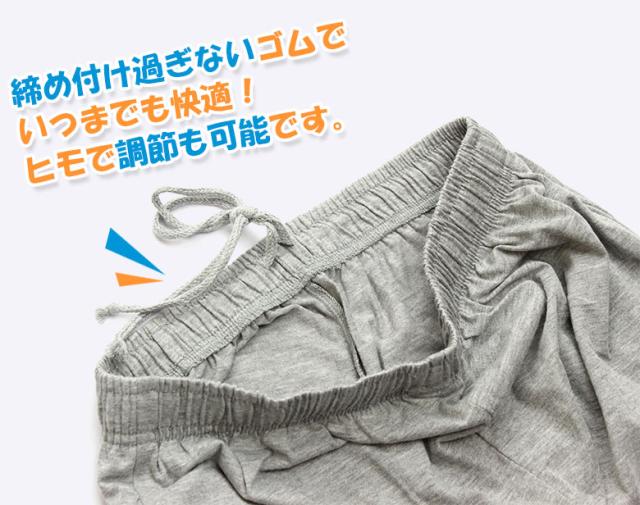 部屋着にぴったり 肌触りの良いやわらかな履き心地♪ 締め付け過ぎないゴムでいつまでも快適!ヒモで調節も可能です。 両サイドに便利なポケット付き! |