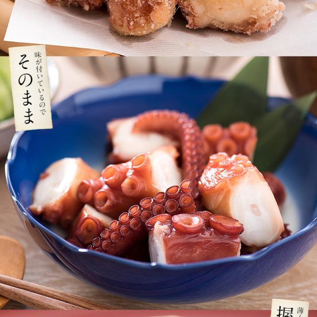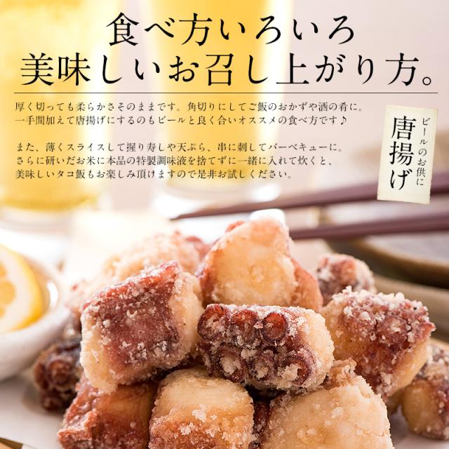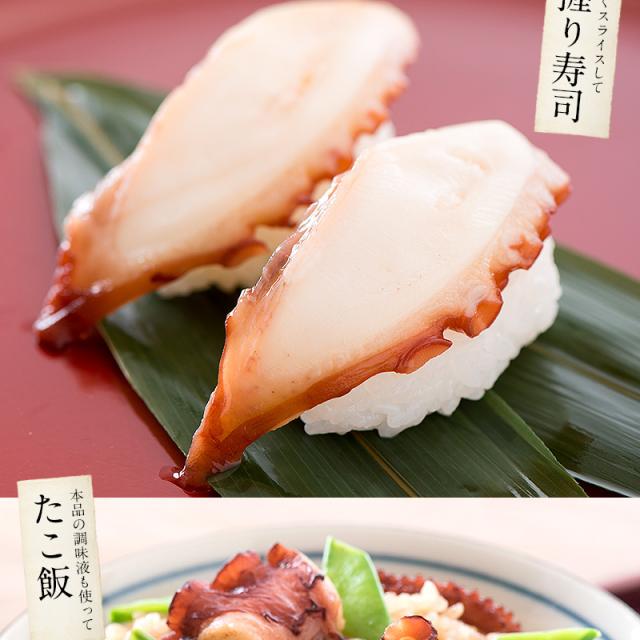 北海道産タコ、醤油、食塩、砂糖、椎茸エキス、昆布エキス、ぶどう糖、調味料(アミノ酸等)、トレハロース、ソルビット、香料、着色料(カラメル)、酸味料、(原材料の一部に小麦、大豆を含む)