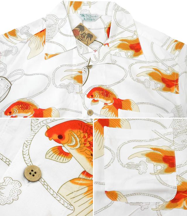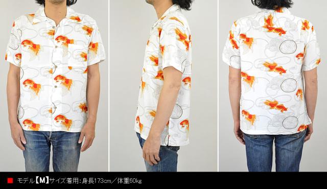 アロハシャツ 和柄 メンズ 金魚 アロハ 開襟シャツ 白 大きいサイズ 3L有り メール便送料無料※代引き除く