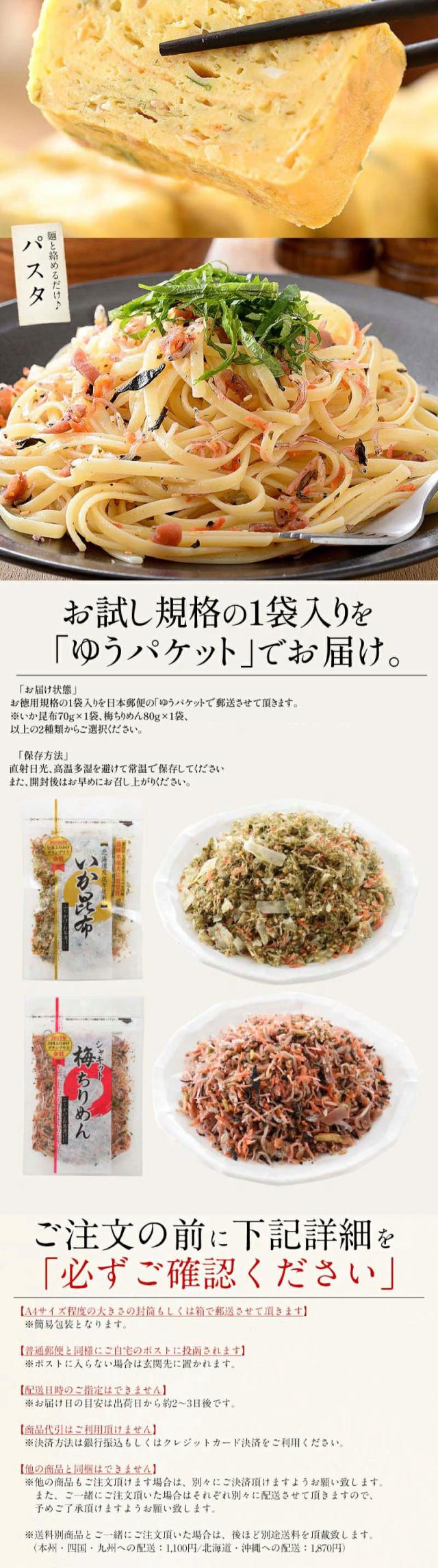 いか昆布70g×1袋、梅ちりめん80g×1袋×1袋からご選択ください。