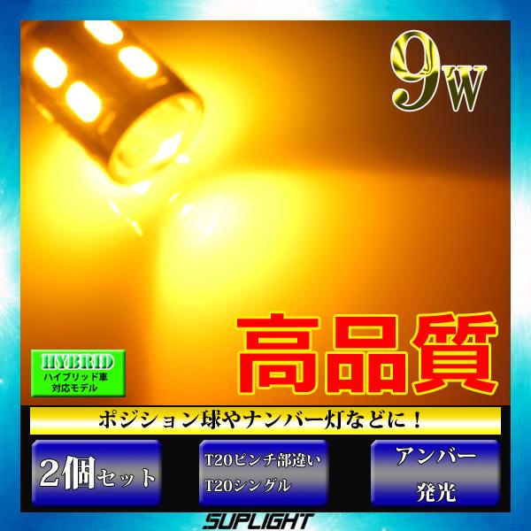 【ハイブリッド車対応】T20ピンチ部違い T20シングル 9w LED T20 ウインカー 純正同等サイズ【無極性】 アンバー