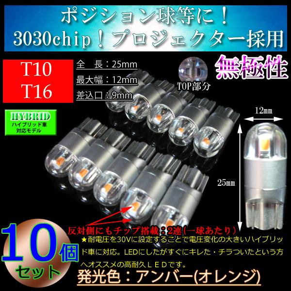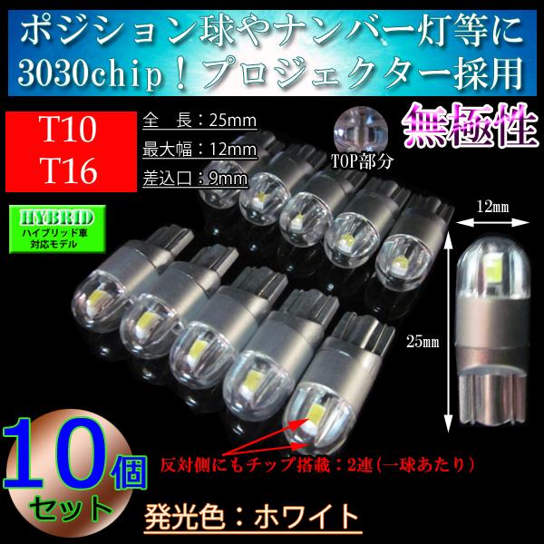 10球セット LED T10 T16 3030SMD 超小型 ポジション球 バックランプ 【無極性】 ホワイト or アンバー