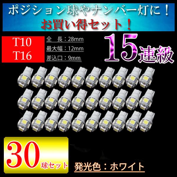 (業販などに最適 まとめ買い)LED T10【30個セット】3chip5連 T10 LED ホワイト
