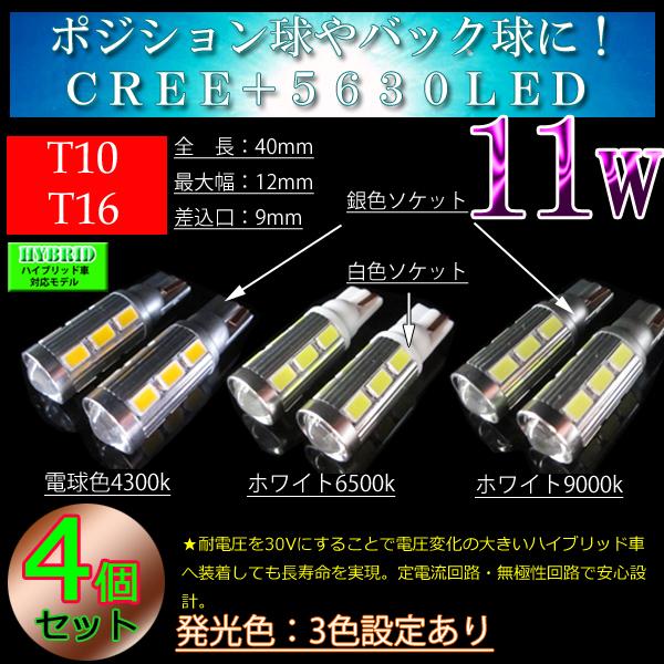 T10 LED T16 LED 【4球セット】 11w CREE ポジション・バックランプ ホワイト 無極性