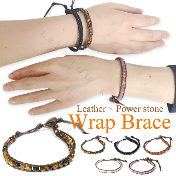 【メール便対応】パワーストーン ラップブレス (04) 天然石 本革 1重巻き ブレスレット 5カラー【天然石 パワーストーン ブレスレット 数珠 メンズ レディース ペアブレスレット】 ┃