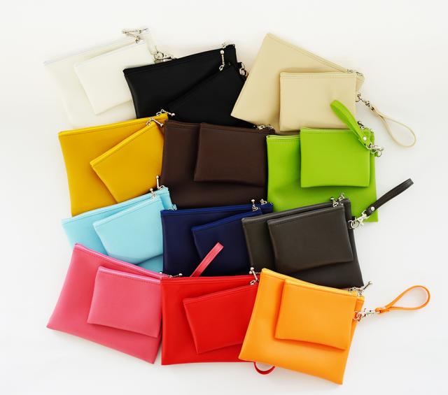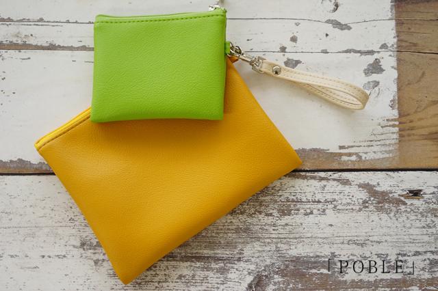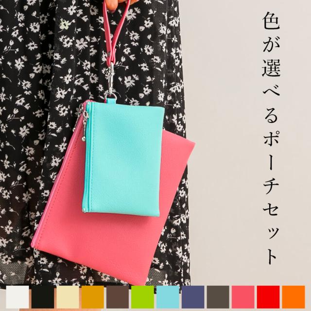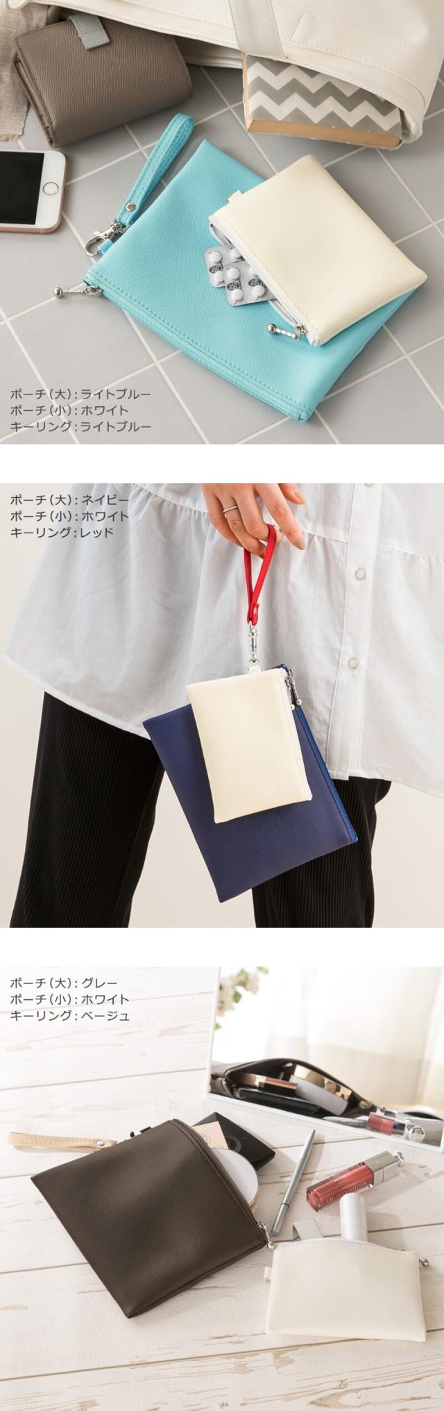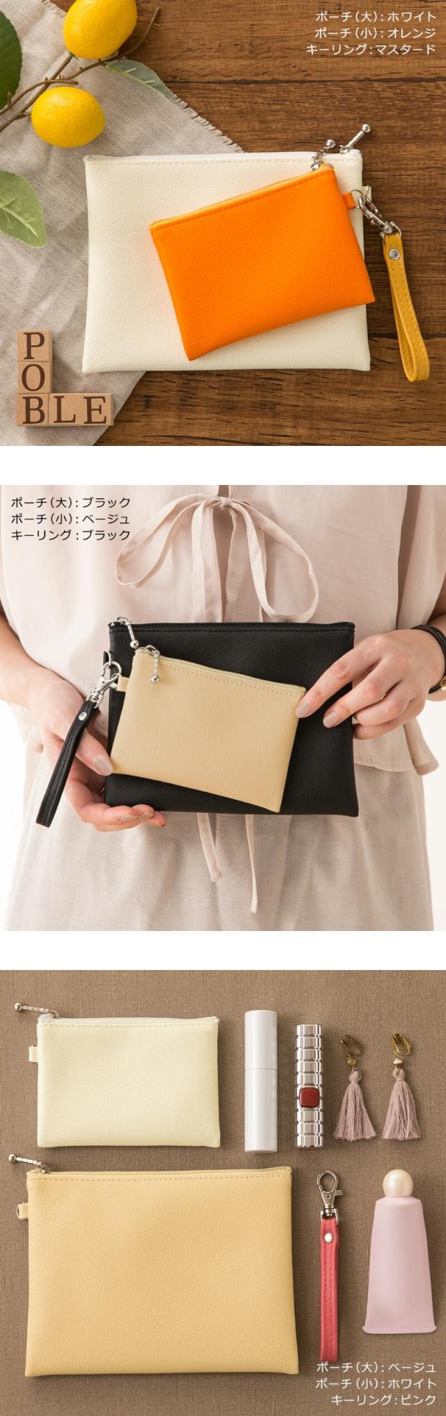 ポーチ2個セット「POBLE」キーリング付き ホワイト ブラック ベージュ イエロー ブラウン グリーン ライトブルー ネイビー グレー ピンク レッド オレンジ